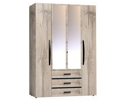 Вместительный распашной шкаф красивого древесного оттенка с 2-мя зеркальными фасадами прекрасно подойдет в небольшую спальню. Функциональное наполнение шкафа разделено на две симметричные половины, что очень удобно для пользования и зонирования гардероба всех членов семьи. За глухими фасадами скрываются отделения с 4 полочками, регулируемых по высоте, что делает хранение одежды и аксессуаров крайне удобным. Зеркальные фасады шкафа обрамлены вставками из ЛДСП. Изнутри зеркало покрыто специальной защитной пленкой, которая предотвратит падение осколков, если оно разобьется. Элегантная ручка-петля позволит открывать дверцу, не прикасаясь к зеркальному полотну, а, значит, его не придется часто протирать. Вторая зеркальная дверца открывается за свес. Внутри шкафа закреплена стационарная штанга (777 мм), которая выдержит нагрузку в 40 кг. Особенно деликатные вещи, постельные принадлежности и другие предметы быта помогут хранить три выкатных ящика с глубиной 40 см. Ящики оснащены шариковыми направляющими полного выдвижения, что обеспечит их высокую прочность и абсолютную бесшумность при эксплуатации.