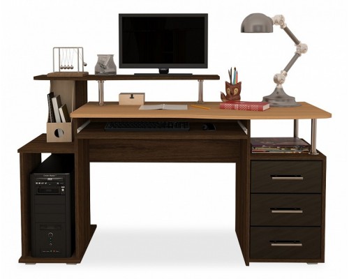 выдвижная панель под клавиатуру, подставка под системный блок, 1 полка, тумбочка:, 1 полка, 3 ящика
