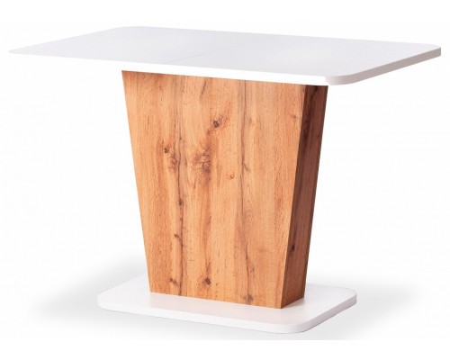 Стильный и компактный обеденный стол-трансформер GENT – это удачное сочетание простоты и элегантности. Стол хорошо впишется в обстановку гостиной, кухни или столовой благодаря отличному сочетанию цветов дуба вотан и белого. Его размеры позволяют комфортно разместить от четырех до шести человек. Вставка стола убирается в ножку. Края оклеены прочной пластиковой кромкой толщиной 2 мм. Механизм раздвижения - синхронного типа со стопором. Стол GENT отлично подойдёт для гостиной, для кухни или для загородного дома. Стол очень прост в сборке, инструкция по сборке прилагается.